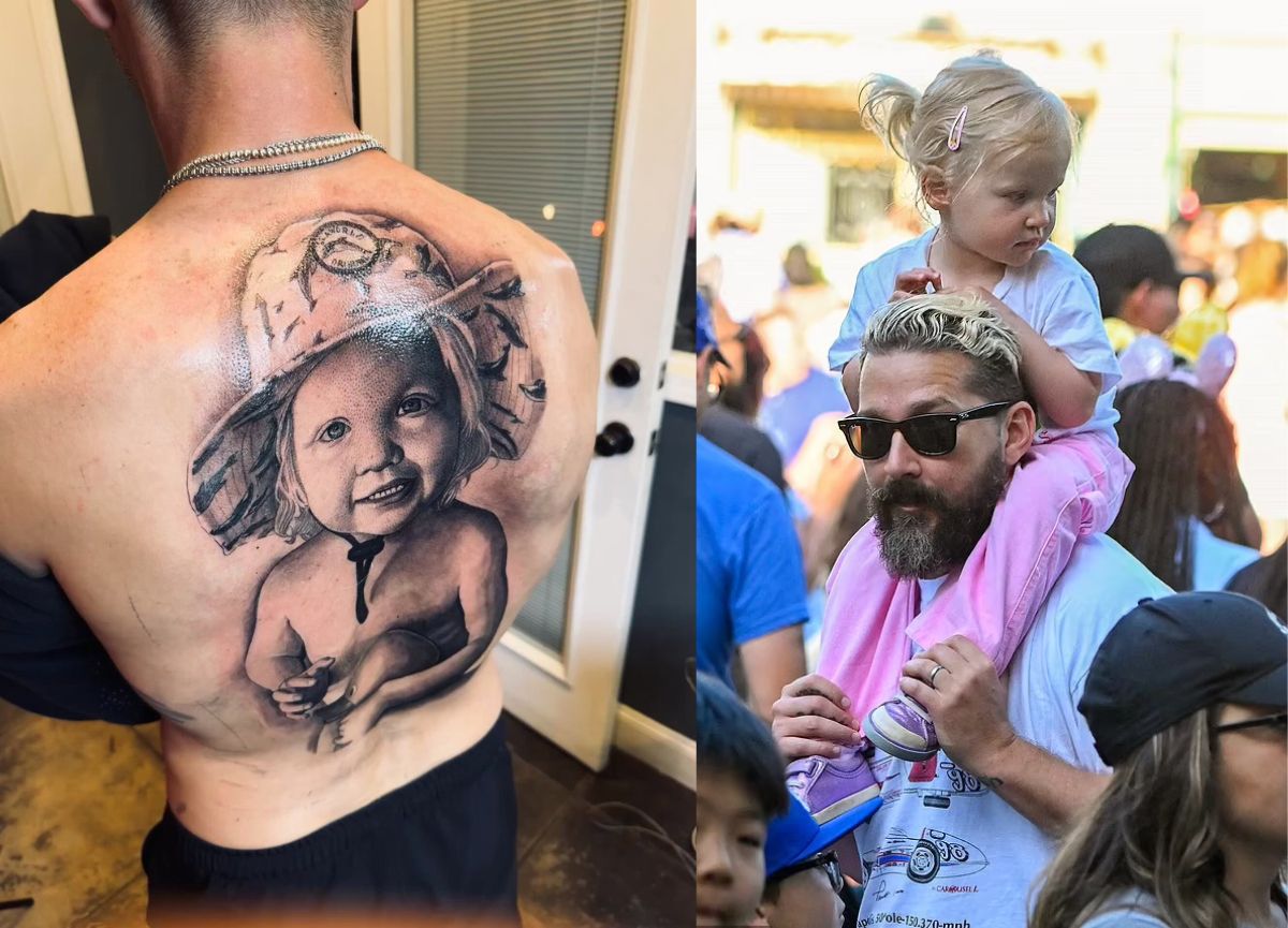 Shia LaBeouf’s back tattoo’s meaning has sparked a lot of interest. The artwork shows a smiling young girl wearing a bucket hat. Fans and reports widely believe it’s a loving tribute to his daughter, Isabel.